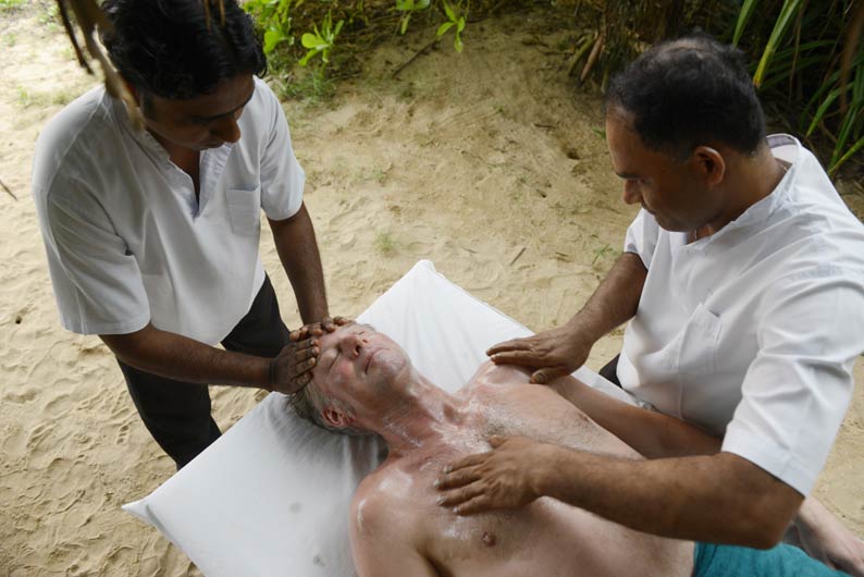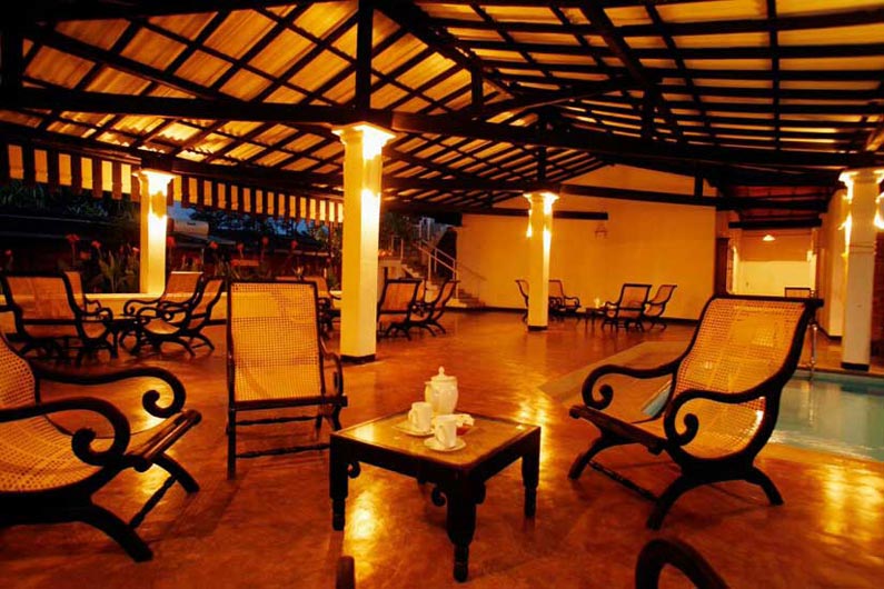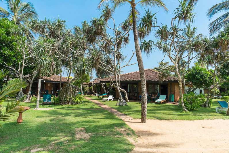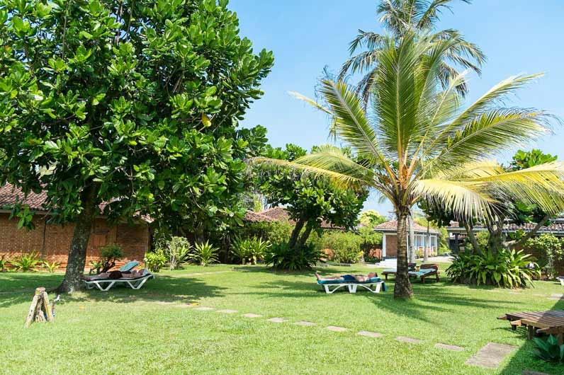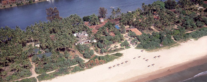 Auf der einen Seite der breite Bentota-Fluss, auf der anderen Seite der palmengesäumte Sandstrand des Indischen Ozeans: Die Kurklinik liegt auf einer Halbinsel von traumhafter Schönheit. Die 25 Zimmer im Bungalowstil sind eingebettet in einen üppigen Tropengarten direkt am Meer.