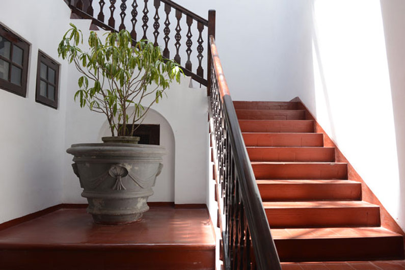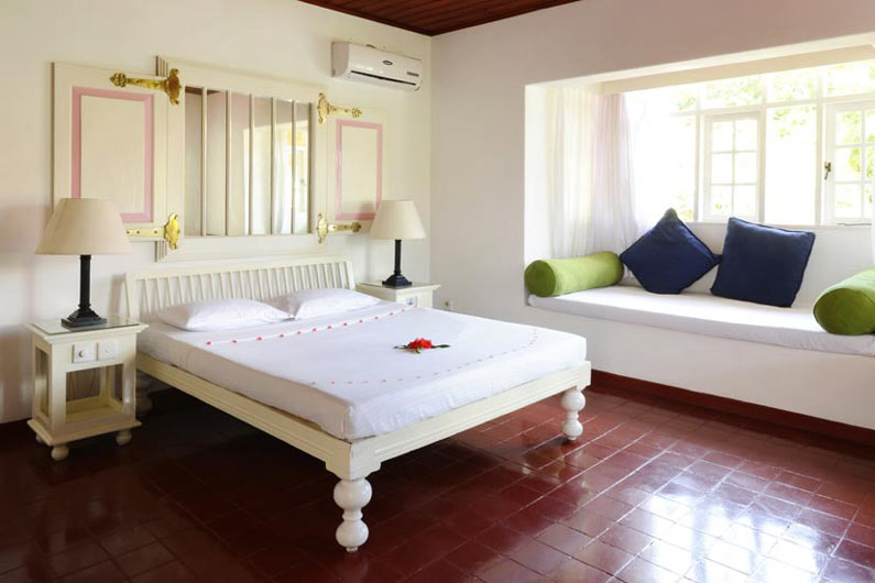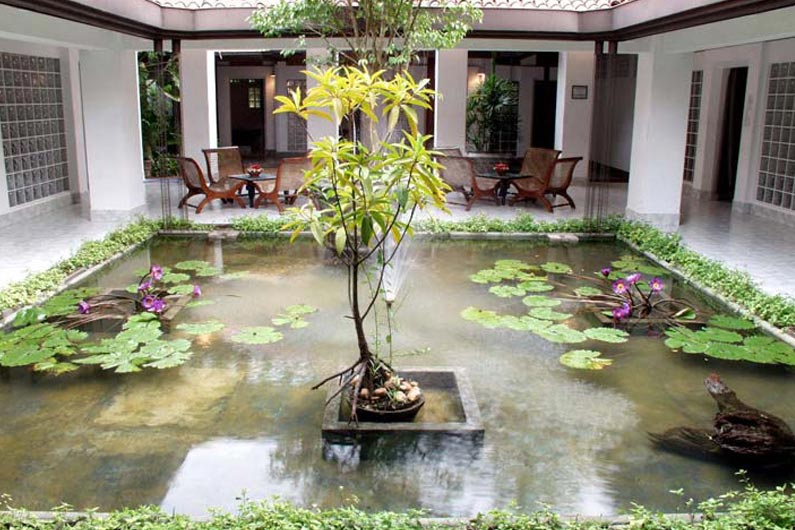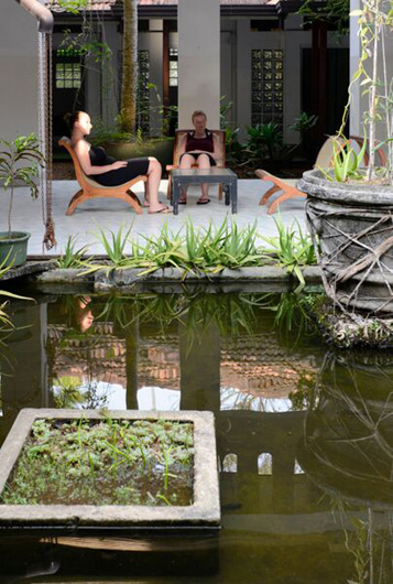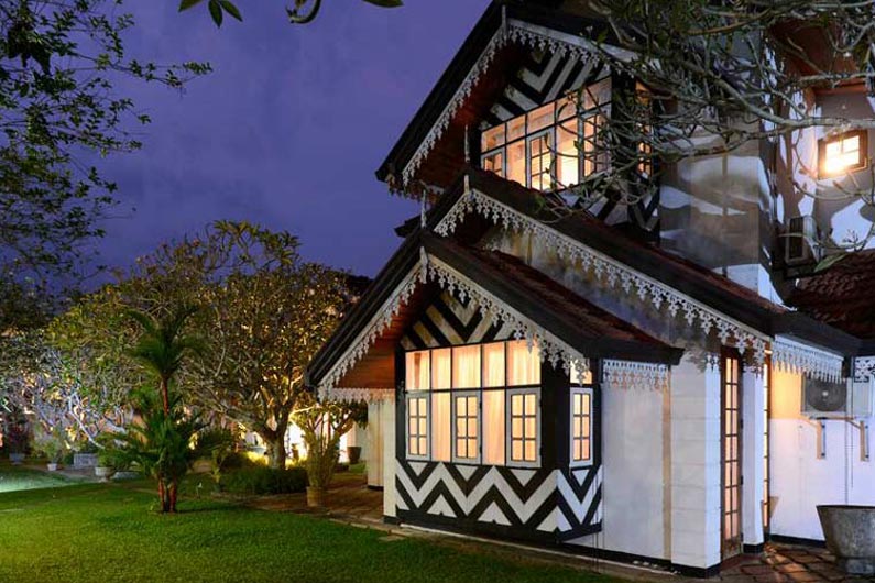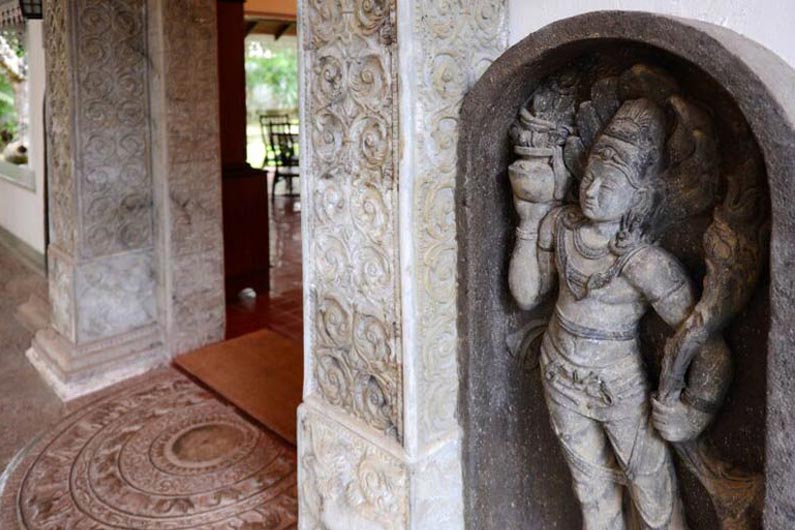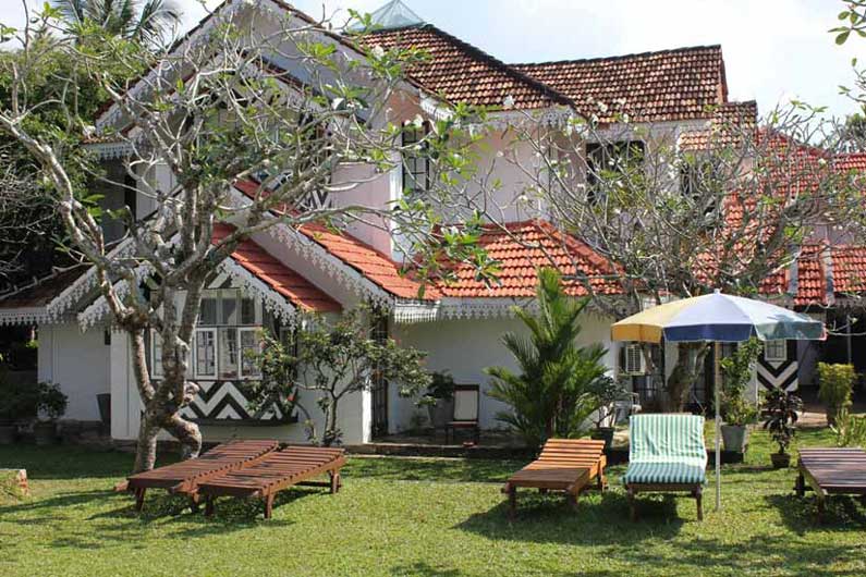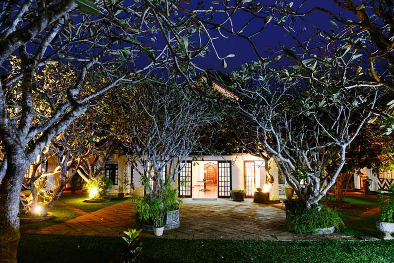 Die weitläufige Anlage mit historischem Ambiente ist ein echtes Kleinod und präsentiert sich als farbenfroh blühender Garten mit tropischen Pflanzen und schattenspendenden Kokospalmen. Die Villa im Kolonialstil bietet antikes Holzwerk, stilvolle Innenhöfe und Arkaden und entfaltet sich zu einem wahren Refugium. Hier lassen sich die wohltuenden Ayurveda-Behandlungen geniessen, ein Ort der Entspannung und Regeneration.